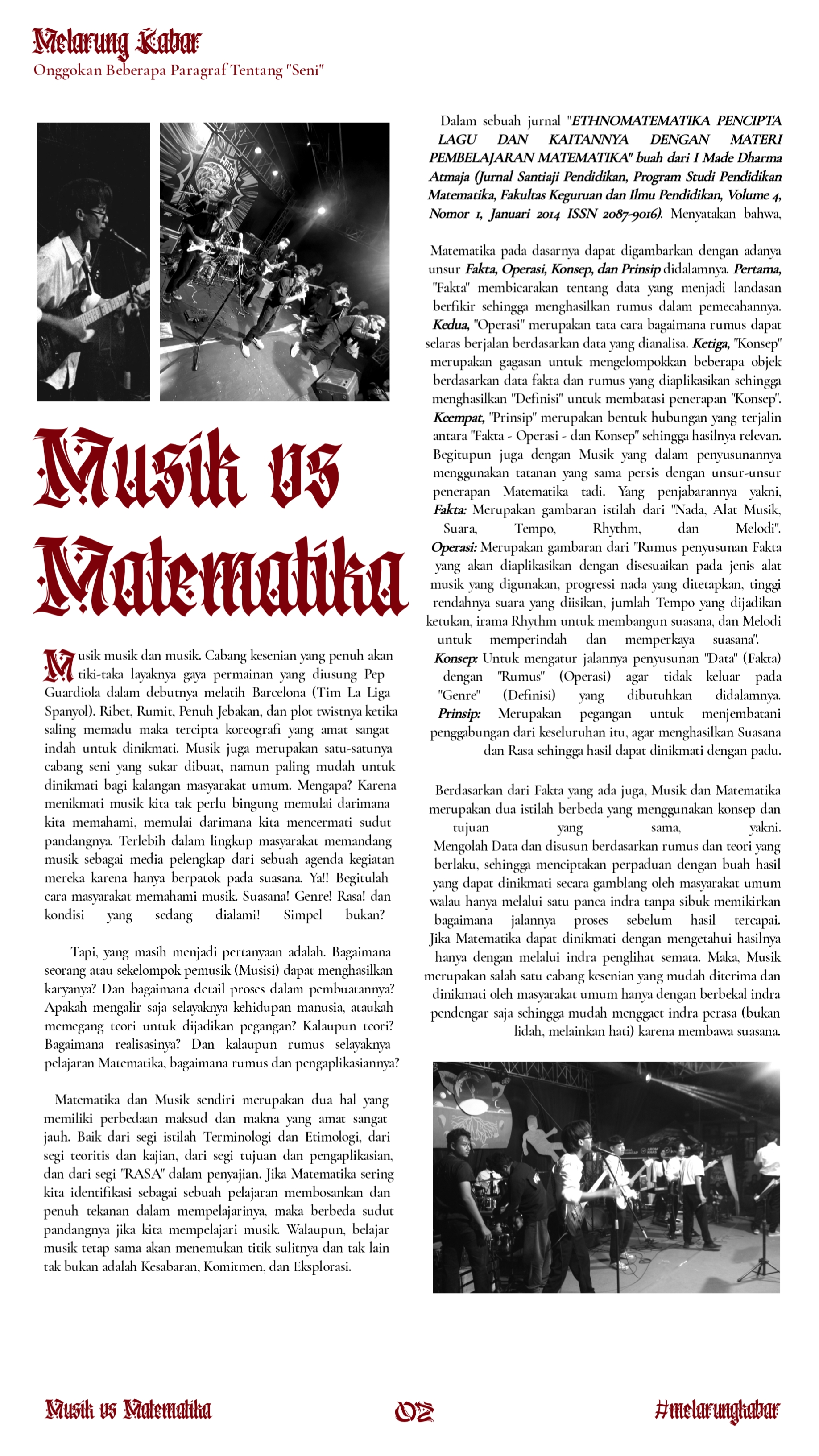 Mengenal Musik sebagai salah satu bentuk cabang ilmu Matematika yang menyenangkan untuk dipelajari. Tempo, nada, irama, notasi, dan frekuensi dipadu menjadi sebuah bentuk harmoni utuh yang bersahabat.