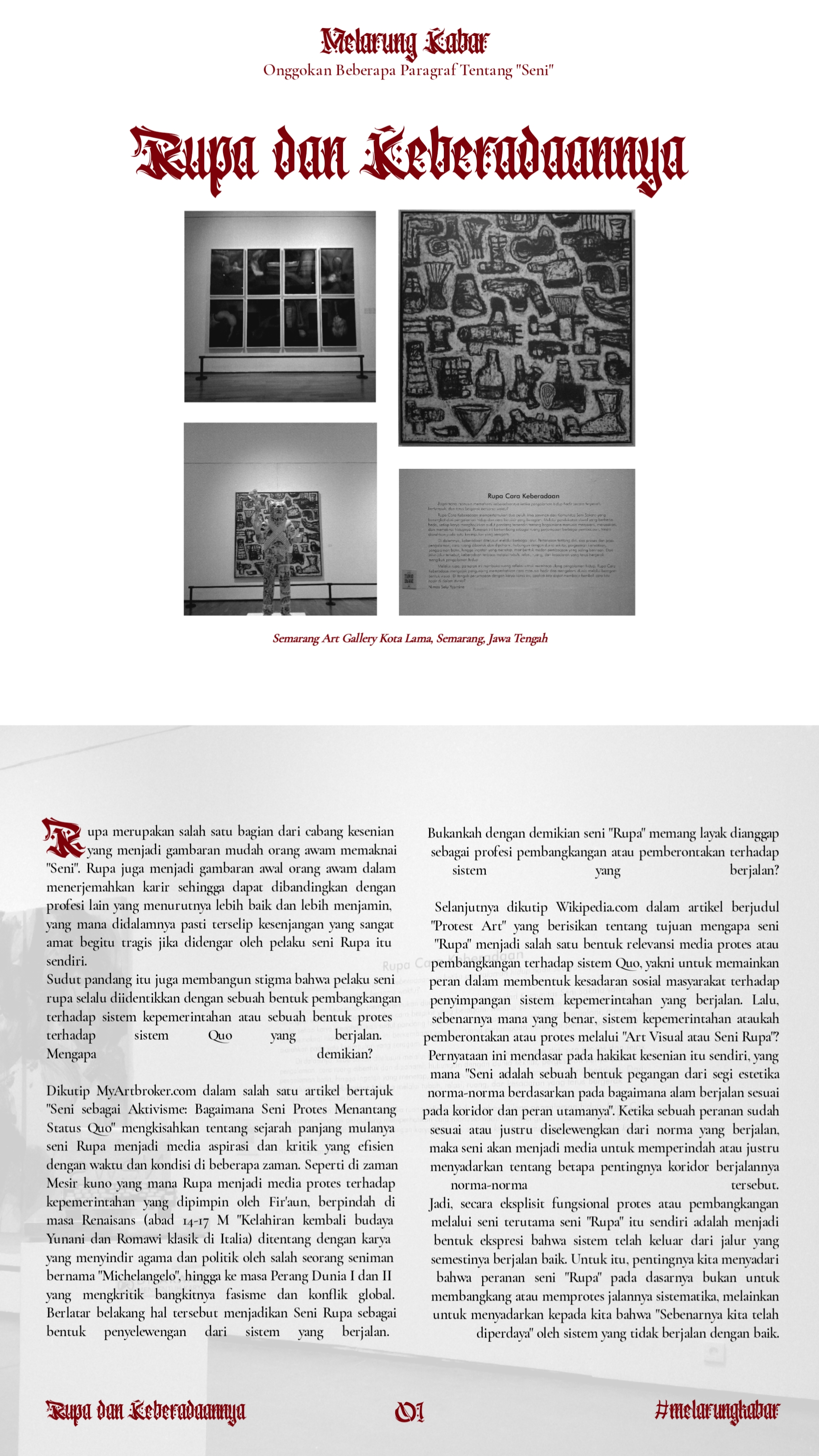 Bagaimana kita memandang Rupa dengan posisi hakikat dalam kehidupan manusia. Apakah pe-rupa selalu dikaitkan dengan profesi yang sering dikesampingkan dengan meninjau kelayakan hidup dikala profesi lain dibilang lebih baik. Lalu apa definisi Baik dan Buruk dalam dunia profesi?